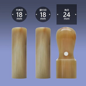osj-3b24 ■商品構成 代表印・・・丸寸胴18ミリ 銀行印・・・丸寸胴18ミリ 角印・・・・角天丸24ミリ (ケースは別売です) ■印材説明 東南アジアなどに広く分布する水牛の角を加工した印材です。 その昔、原産国がオランダの植...