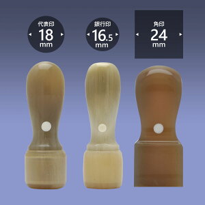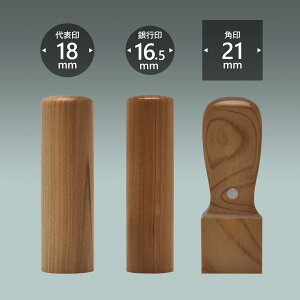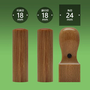 ht-3b24 ■商品構成 代表印・・・丸寸胴18ミリ 銀行印・・・丸寸胴18ミリ 角印・・・・角天丸24ミリ (ケースは別売です) ■印材説明 日本に生育するツゲ科ツゲ属の樹木が原材料です。 アカネと比較すると、密度・強度とも優れて...