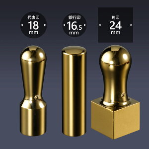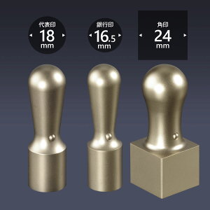 timg-3c24 ■商品構成 代表印・・・丸天丸18ミリ 銀行印・・・丸寸胴16.5ミリ 角印・・・・角天丸24ミリ (ケースは別売です) ■印材説明 表面を磨き上げゴールドの鏡面仕上げにしたチタンです。 当店のチタンは99.9%の...