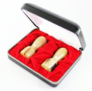 法人オランダ水牛印鑑2本セット Dセット ケース付【送料無料】 白く飴色ともいえる中に1本1本異なる斑点や縞模様が入っている様子は、まさに「自分だけの印鑑」。女性に人気も納得です。硬度・粘りともに最高級印材にひけを取りません...