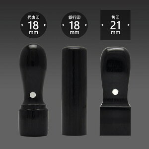 ks-3f24 ■商品構成 代表印・・・丸天丸18ミリ 銀行印・・・丸天丸18ミリ 角印・・・・角天丸21ミリ (ケースは別売です) ■印材説明 東南アジアなどに広く分布する水牛の角を加工し、漆黒に染められた印材です。 総合的には一番...