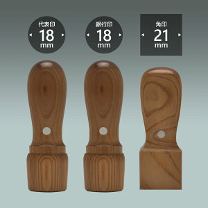 ak-3d ■商品構成 代表印・・・丸天丸18ミリ 銀行印・・・丸寸胴18ミリ 角印・・・・角天丸21ミリ (ケースは別売です) ■印材説明 東南アジアに生育するアカネ科の樹木が原材料です。 本柘と比較すると、成長が早く樹木も太いため...