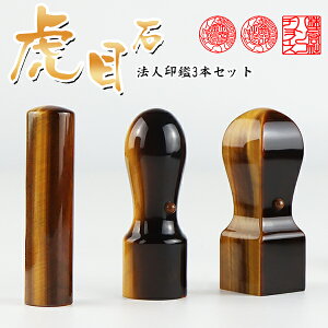 タイガーアイ法人印鑑3本セット【送料無料】【10年保証】 仕事運を高めてくれる、成功石 洞察力・好奇心・独立・知識・富貴 ●印鑑サイズ 天丸21mm+寸胴18mm+天角24mm 天丸18mm+寸胴16.5mm+天角21mm...