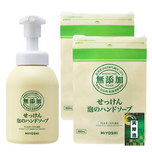 ミヨシ 無添加せっけん 泡のハンドソープ 本体 350ml + 詰め替え 300mlサッと簡単に手洗いができる泡状のハンドソープ手肌にやさしい無添加の泡が、汚れや バイ菌をしっかり落とし、必要なうるお...