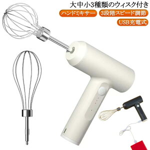 大中小3種類のウィスク付き USB充電式 3段階スピード調節 ハンドミキサー【USB充電式&コードレス】バッテリー:2000mAh充電式リチウムバッテリー、一回3時間充電だけで長く使用できます。コードレス設計、場所を選ばなくても使用で...