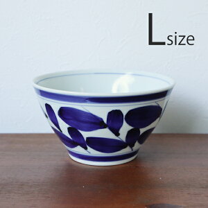 手書き感がかわいい斜葉のシリーズです。 どんぶりが4サイズあります。 こちらは二番目に大きいLサイズです。 別売りで、LL・M・Sサイズのプレートとそば猪口があります。 サイズ:約直径14.5×高さ7.6cm 材質・質感:磁器・つるつ...