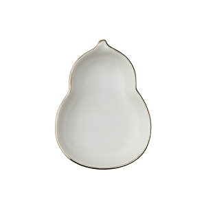 縁部分に手描きのラインを加えた、ひょうたん型の小皿です。迎春を意識した形と色合いで、栗きんとんや田作りなど、ちょっとしたおせち料理の盛りつけにぴったり。シンプルなので、薬味皿や醤油皿としてや、お漬物や佃煮などをのせて