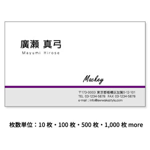 2諧調のラインを配置したデザインの名刺です。ビジネス用名刺、プライベート名刺、趣味の名刺、ショップカードなど。 作成内容、レイアウトには特に制限はございません。お好きな印刷内容で名刺のオーダーを承ります。 ■ 枚数 最少10
