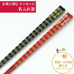 和モダンのおしゃれなお箸。文字は和風も洋風もおすすめです!・誕生日祝い、長寿祝いに・名入れ、メッセージ無料です!家族や友人へ贈り物に人気の商品です。・サイズ:23cm(黒)/21cm(赤) ・材質:天然木...