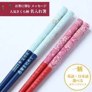 食卓に桜の舞うかわいいお箸です。色合いはマットでおしゃれです。父の日・母の日に店舗で人気の商品です!・名入れ、メッセージ無料です!※こちらは「箸 一膳」のご注文ページです。「袋包装」または 「紙箱入り(有料)」を選んで