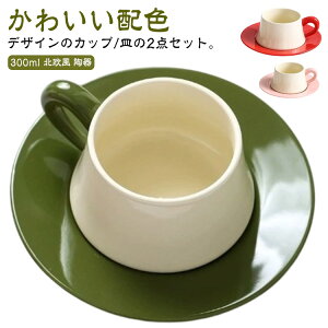 かわいい配色デザインのカップ/皿の2点セット。【300ml】【北欧風】【陶器】自宅でカフェのようなコーディネートが楽しめる、カップ&プレートのセットです。シンプルなのに素敵に見える。使ってみてわかる、飾りすぎない器こそ、毎日の
