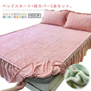 ベッドスカート+枕カバー3点セット。敷パッドの表面は中綿のクッション加工を高めるキルティング仕様。冬の乾燥した時期にパチパチと不快な静電気が起こりやすい。静電気体質の方でも安安心してお使いいただけます...