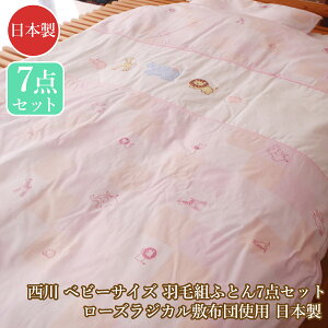 ローズラジカル敷布団ベビー羽毛布団7点セット 西川 日本製 洗える かわいい動物柄 すべて西川のベビーふとんセットです。ピンク色