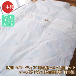 ローズラジカル敷布団ベビー羽毛布団7点セット 西川 日本製 洗える かわいい動物柄 すべて西川のベビーふとんセットです。ブルー色