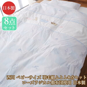ローズラジカル敷布団ベビー羽毛布団8点セット 西川 日本製 洗える かわいい動物柄 すべて西川のベビーふとんセットです。ブルー色