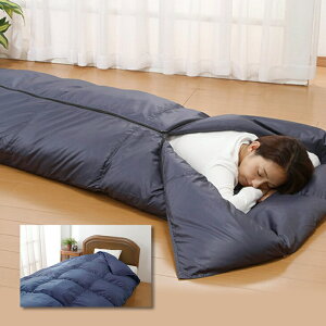 ふわふわの羽毛入りで軽く、あると便利な寝袋です。 防災用に、アウトドアに、ドライブに、普段使いに。 寝袋使用時はファスナーで簡単に閉じることができます。 広げればダウンケットとして使えます。掛カバー用ループ7ヶ所付き 着る毛布として