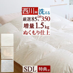 日16時~8H] 羽毛布団 セミダブル 西川 【掛布団カバー等特典付】厳選ダウン85% 増量1.5kg DP350 洗える コインランドリー対応 抗菌 日本製 羽毛ふとん 羽毛布団 羽毛掛け布団 セミダブルサイズ...