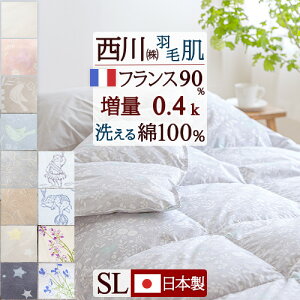 羽毛肌掛け布団 ダウンケット シングル 西川 洗える 日本製 増量『0.4kg』フランス産ダウン90% 羽毛ふとん DP400 綿100%側生地 羽毛布団 夏用 肌布団 ふとん ウォッシャブル シングルロングサイズ