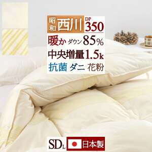 全品P5&最大10%OFFクーポン★[20日16時~8H] 羽毛布団 セミダブル 昭和西川 羽毛 DP350 しっかり1.5kg ぽかぽか暖か 羽毛ふとん ホワイトダウン85% 羽毛掛け布団 洗える コインランドリー対応 抗菌 防臭...