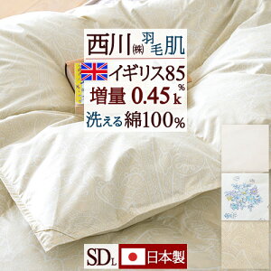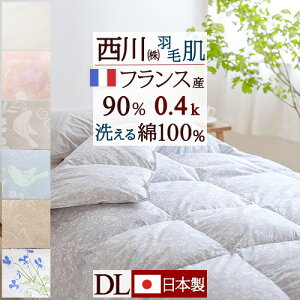 羽毛肌掛け布団 ダウンケット シングル 西川 洗える 日本製 増量『0.4kg』フランス産ダウン90% 羽毛ふとん DP400 綿100%側生地 羽毛布団 夏用 肌布団 ふとん ウォッシャブル シングルロングサイズ...