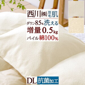 羽毛肌掛け布団 ダブル ダウンケット 西川 夏 洗える ダブルサイズ ホワイトダウン85% 羽毛ふとん 増量0.5kg パイル タオル地 綿100% 肌掛け布団 羽毛布団 夏用 抗菌 羽毛肌布団 ダブルロング 丸洗い...