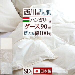 6時~8H] 羽毛肌掛け布団 ダウンケット セミダブル グース 西川 夏用 洗える セミダブルサイズ 羽毛ふとん 羽毛布団 側生地 綿100% ハンガリー産グースダウン90% ふんわり0.35kg 日本製...