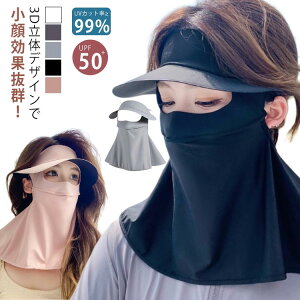 立体デザインで小顔効果抜群!360°全方位に顔、首、後頭部を包む!息苦しくない!マスク付きサンバイザーUVカット率?99% 接触冷感 UPF50+【触った瞬間ひんやり】接触冷感の材質を採用して、汗をかいたり水に触れたりした時、氷水と洋の満れ