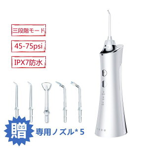 【5本替えノズル】口腔洗浄器 口腔洗浄機 USB充電式 IPX7防水 300MLタンク 大容量 超音波水流 水流洗浄 水流ケア 口腔ケア 5調節可能 歯茎ケアー 歯間 水流洗浄 携帯型 口腔洗浄機 歯間ジェット洗浄...