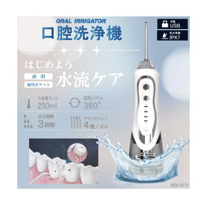 3種の水流パターン・USB充電式 商品名:ジェット水流口腔洗浄器 ACアダプター付き 1個 サイズ(1個):本体:(約)6×6×14.5cm 重さ(1個):本体:(約)240g 素材:ABS...