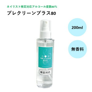 手指にも器具にも使える、 ネイリスト検定対応のアルコール度数80%のエタノール溶液です。 手指の他にも器具やテーブル・手すりなどの身の回りの 生活用品の拭き取り除去や清掃にもご使用いただけます。 200mlスプレータイプです。 無香