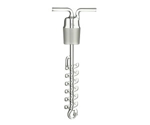 ●上部2ヶ所のノズルからガスを通気することによって、びん内部の液体や顆粒等に物質を吸収させます。●不要物質の吸着によってガスの純度を高めることや、内部液に吸収された物質の採取等に利用できます。●球状をしたガス発泡部の側