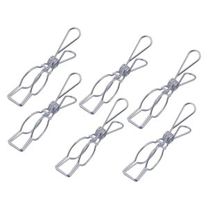 先端幅2.4cm・本体重量:約160g・材質:18-8ステンレス・原産国:中国・セット内容:6個入り物干し竿用の大型ピンチシー...