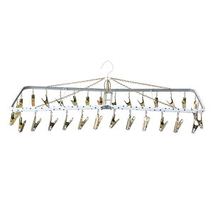 清潔で丈夫なアルミフレームのピンチハンガーです。 【特長】 ◆ 室内干しに便利なコンパクトサイズです。 ◆ 汚れもサッと拭き取れ、軽くて丈夫なアルミフレームです。 ◆ 直径最大約4cmの太いポールや、ロープ、カモイにも掛けられます