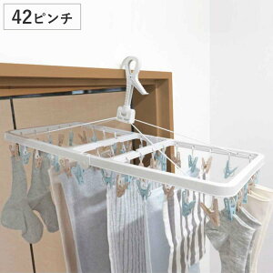 ピンチ40個付きの折りたたんで立ててコンパクトに収納できるピンチハンガー。タオルや下着、靴下などたくさんの洗濯物を干せて、使わない時は省スペースでしまえます。2個ピンチハンガー重ねて使用可能なフック付き。折りたたんで、立