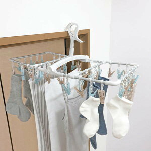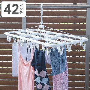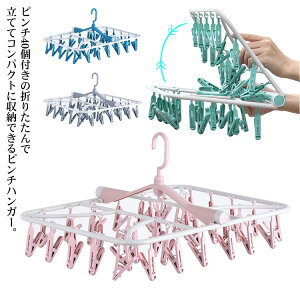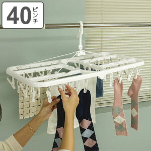 ピンチ40個付きの折りたたんで立ててコンパクトに収納できるピンチハンガー。タオルや下着、靴下などたくさんの洗濯物を干せて、使わない時は省スペースでしまえます。2個ピンチハンガー重ねて使用可能なフック付き。折りたたんで、立