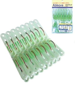 サイズ(約) 5.5×3.7×1.2cm 材 質 【本体】ポリプロピレン 【バネ】鋼 入 数 ピンチ16個入 カラー (G)グリーン アルモア物干しハンガーの取替えにも使える。 吊り下げパーツ5本入り。