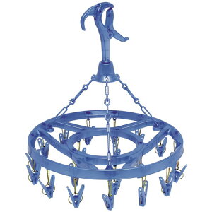 ・小物干しに最適。ピンチ18個。 ・タオルやハンカチ、くつ下などの洗濯物を干すのに便利です。 ・フックは、竿に、ロープに、カモイにかけられる3Wayキャッチフックです。 ・サイズ:直径(約)34cm ・材質:ポリプロピレン、他 ・原産国