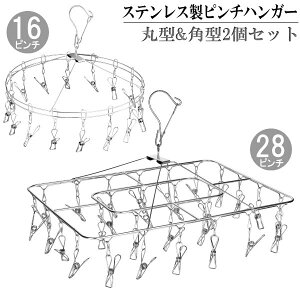 劣化しにくく、錆に強いステンレス製! 丸型16ピンチ1個と角型28ピンチ1個の2種セット ●360度回転フックで向きが変えられ干しやすくなっています。 ●外で干す時に安心のフックストッパー付き...