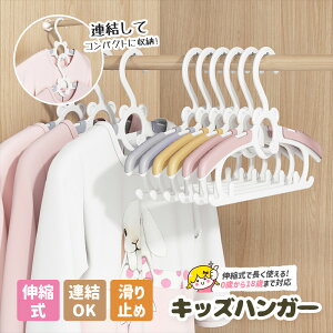0-18歳まで使える!!7段階サイズ調整伸縮式・滑り止め・乾湿両用・連結OKベビーハンガー色選べる10本セット【ハンガーの肩が可動】伸縮できて、新生児から大人まで、成長に合わせて長く使える!!【省スペ...