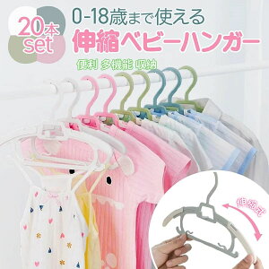 新生児から子どもが成長するまで使用できる伸縮式ハンガー。 20本セット上質なプラスチック素材を採用しており、耐重量9kgのしっかりした作りが特徴。肩幅がスライドして伸縮するので、新生児から大人まで幅広く使用できます...