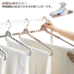 バスタオルハンガー 4本組 風通し 伸縮式 フェイスタオル 乾きに