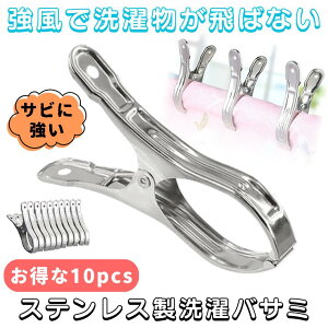 ?【しっかり挟めるクリップ力】高品質のステンレスを使用した洗濯ばさみ大10個セットです。強力なバネとクリップ力で物干し竿やハンガーをしっかりホールドし、強風時も洗濯物やお布団が飛ばされる心配はありません♪...
