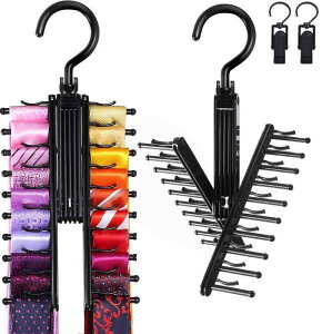 サイズ:幅13×奥行1.8×高さ29cm●素材:本体・フック=ABS樹脂 【パッケージ内容】ネクタイハンガー(2本)+洗濯バサミ(2個)●クロスした状態ではネクタイが見やすく取り出しやすいです。●回転フックをクルッと回せば180度...
