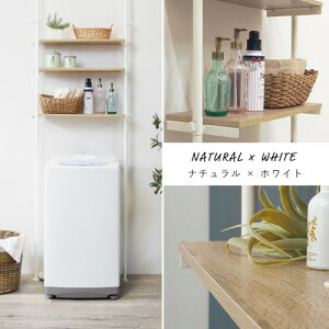 【商品名】 突っ張り 洗濯機ラック 約幅70cm ホワイト ×ナチュラル棚板3枚 スチール ランドリーラック 組立式 脱衣所 洗面所 【ジャンル・特徴】 ランドリーラック ランドリー収納 ランドリーボックス...