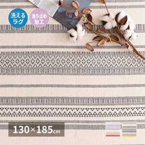 ざっくり感のあるコットンの心地よい手触りとやわらかな風合いが魅力のインド綿100%ラグ。アンティークやヴィンテージにもあうシンプルな幾何学デザインで、四隅に付いたタッセルがおしゃれ度をさらにアップ!天然素材で肌にやさしく