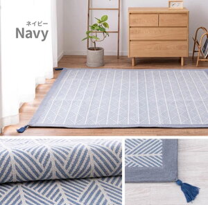 ざっくり感のあるコットンの心地よい手触りとやわらかな風合いが魅力のインド綿100%ラグ。アンティークやヴィンテージにもあうシンプルなデザインで、四隅に付いたタッセルがおしゃれ度をさらにアップ!天然素材で肌にやさしく、通気