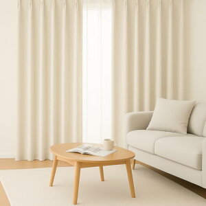 ドレープカーテン UVカット 形態記憶加工済み 断熱 節電対策 昼夜目隠し 保温 おしゃれ 洗える 洗濯機対応 (カーテン2枚) ベージュ【1級遮光】迷ったらこれ!...