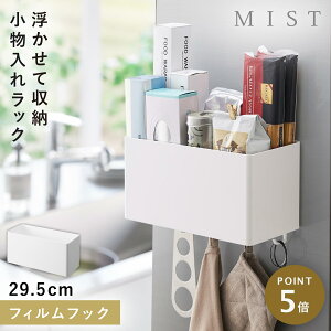 フィルムフックストレージバスケット ミスト ホワイト 山崎実業 MIST 収納ボックス 壁付け 壁掛け キッチン 洗面所 洗濯機横 収納 おしゃれ ホワイト 2171 説明文 フィルムフックで好きな位置に簡単取り付けの...