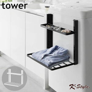 [ 洗濯機横マグネット折り畳み棚2段 タワー ] バスタオル置き 折りたたみ 着替え置き マグネット 棚 バスタオルラック 整理棚 バス用品 一時置き 便利グッズ 洗濯機 山崎実業 タワー 公式 tower...