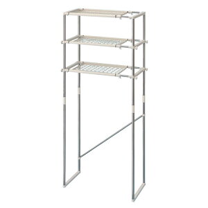 【商品説明】スペースを有効活用できる棚3段タイプ。本体の横幅は洗濯機や設置スペースに合わせて調整できます。棚部は収納力抜群の奥行ワイドなメッシュ棚。中段、下段棚は高さ調整ができます。筋交いパイプを採用しておりグラツキを